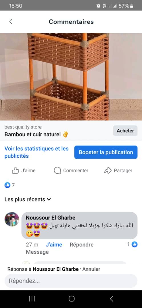 Hand made avec des Matières naturelles : Bambou et cuir القياسات 95*17*24*40 شكرا على ثقتكم